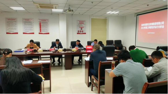 10月26日上午,市農(nóng)發(fā)集團(tuán)召開2023年第三季度經(jīng)濟(jì)運(yùn)行分析會(huì),會(huì)議由黨委書記、董事長(zhǎng)王柏榮主持并講話,集團(tuán)黨委副書記、總經(jīng)理胡建軍,黨委委員、副總經(jīng)理吳娓及各子公司、各部門主要負(fù)責(zé)人出席會(huì)議。
