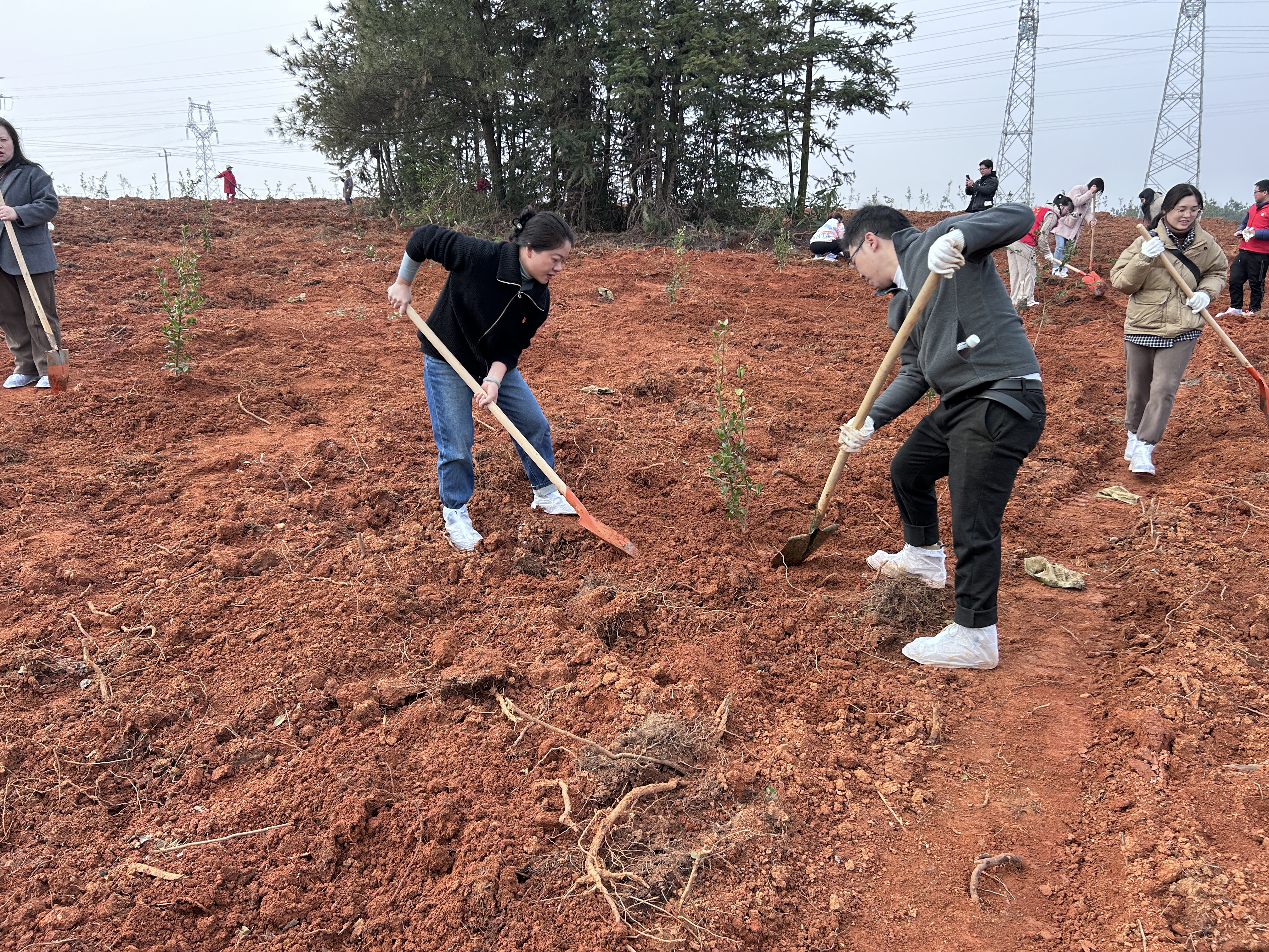 活動(dòng)現(xiàn)場(chǎng),黨員們以飽滿的熱情投入到“植綠”中,紛紛挽起衣袖,有序組隊(duì)、分工協(xié)作、干勁十足,挖坑、扶苗、培土、澆水,每個(gè)環(huán)節(jié)都做得認(rèn)真細(xì)致、有條不紊。大家揮舞著挖鋤,刨開夢(mèng)想的土,挖開希望的坑,種下美好的樹苗,澆灌辛勤的汗水,培上奮發(fā)的土壤,孕育未來的精彩,充分體現(xiàn)了黨員們不怕苦、不怕累的艱苦奮斗精神。經(jīng)過忙碌的勞動(dòng),一棵棵樹苗挺立在藍(lán)天白云下,展現(xiàn)出滿目春意,增添了一道靚麗的綠色風(fēng)景線。