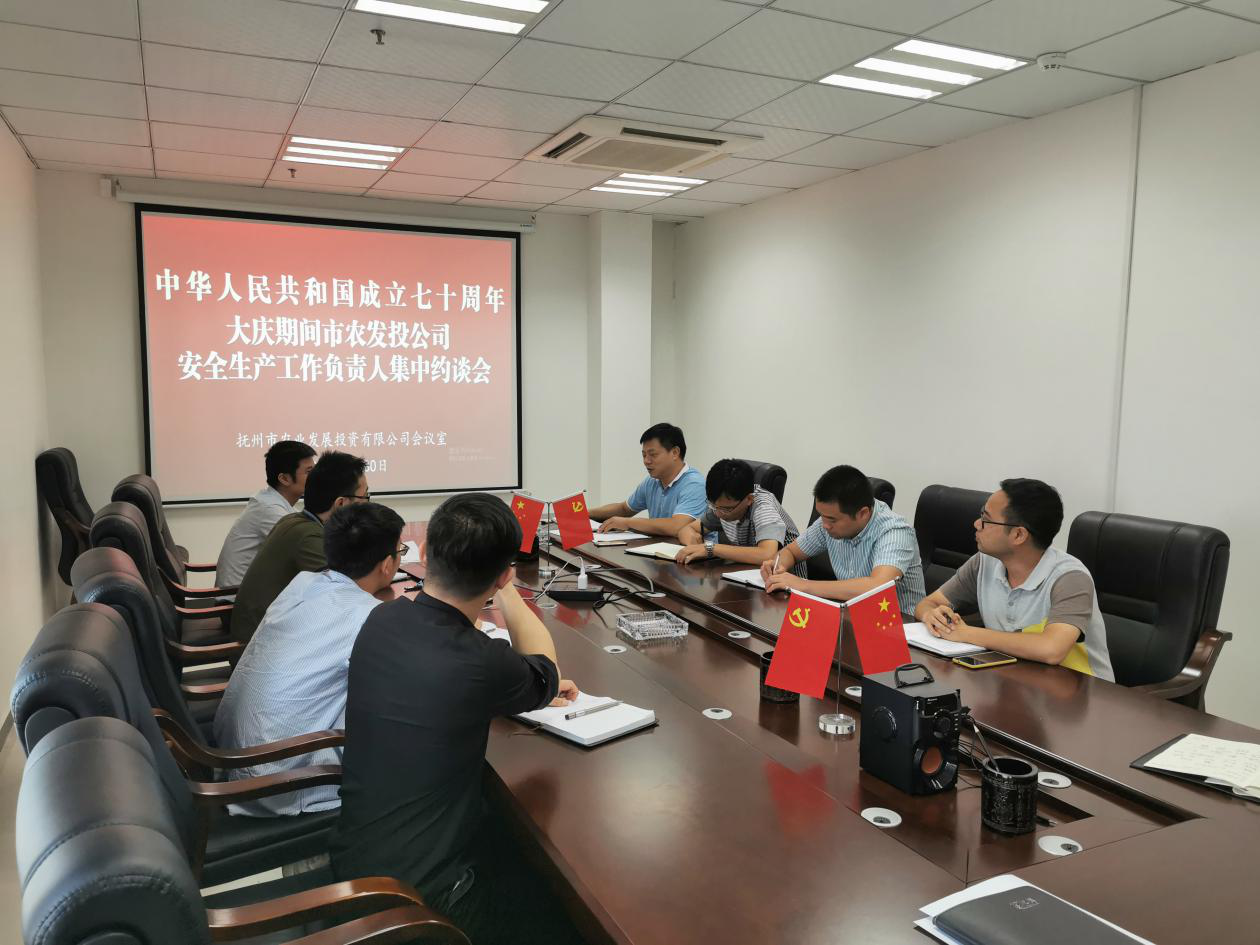9月30日下午,市發(fā)投公司召開中華人民共和國成立70周年大慶期間安全生產(chǎn)工作負(fù)責(zé)人集中約談會。會議由公司副總經(jīng)理周志奇主持,各部門、子公司負(fù)責(zé)人及安全生產(chǎn)負(fù)責(zé)人共十余人參加了本次約談會。(肖文輝)